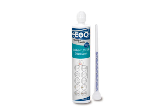 EGOVINYLESTER Dübel Sprint 2k- Verbundmörtelsystem styrolfrei ist ein Zweikomponenten-Verbundmörtelsystem, das in Verbindung mit verzinkten Gewindestangen und Edelstahl, z.B. A.4, für Verankerungen in ungerissenem Beton zugelassen sind.